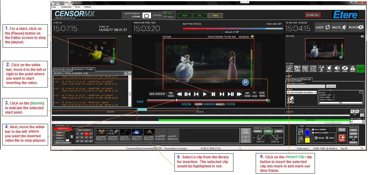 If the duration between Marks is more significant than that of the clip, a warning message appears to warn the operator, who can choose to enter the duration.