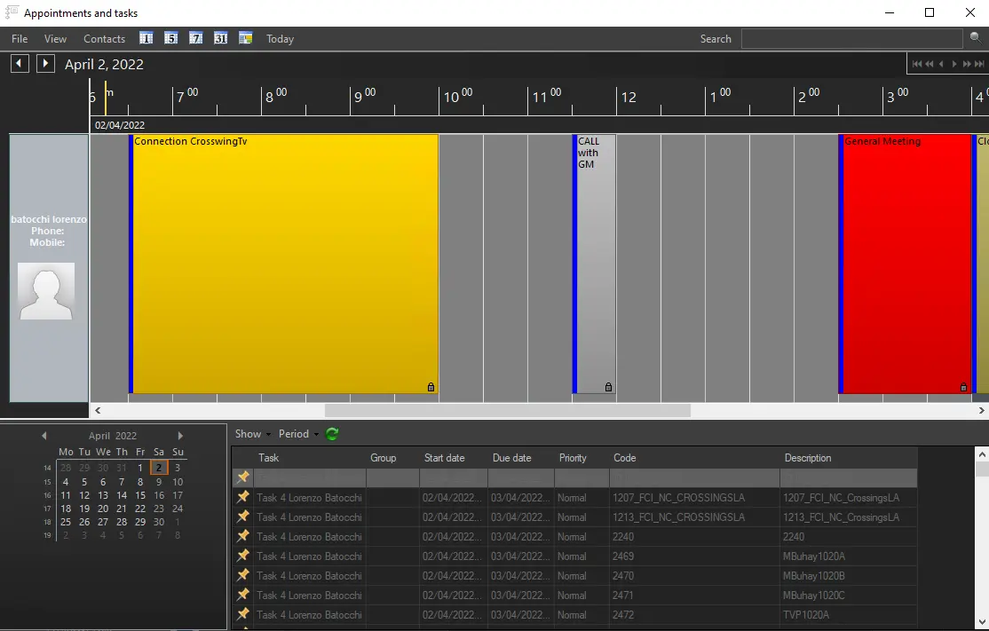 The "Agenda View" module allows consulting and managing all the appointments and tasks for the current contact, thus making of this module a key tool for the allocation of resources during the broadcast management process: