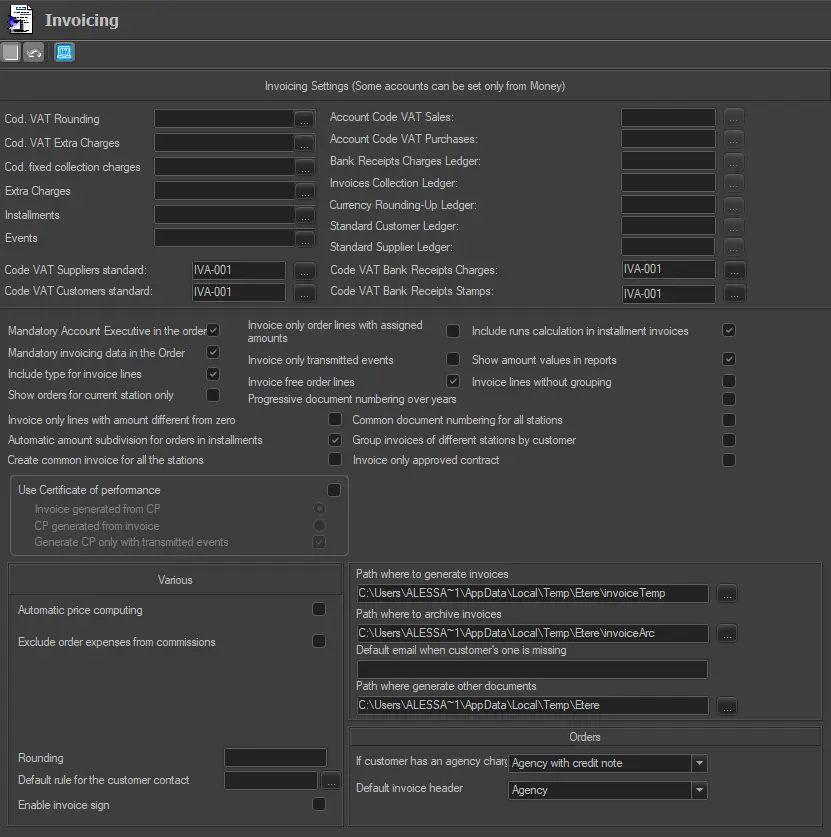 •NB: It's highly suggested to use a shared directory (e.g. \\AccountingWS\Reports\) with read/write permissions for all users intended to generate invoices.