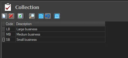 The "Collection" table allows setting the collections used in the Personal Data management to group entities with common characteristics. In Personal Data is possible to set a collection, chosen among the ones defined here, only for companies. Collection