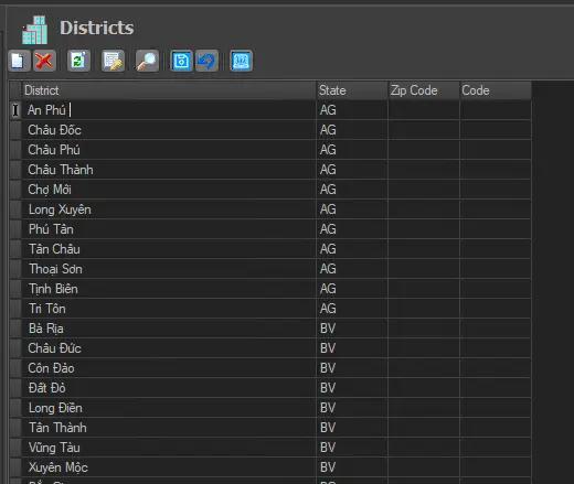 This section allows to manage the "Districts" table through the following functions: