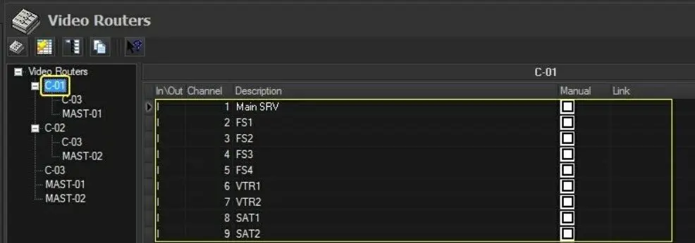 Main Virtual Router (C1) > Master Control (MTX MC1) - Video Router (C3)