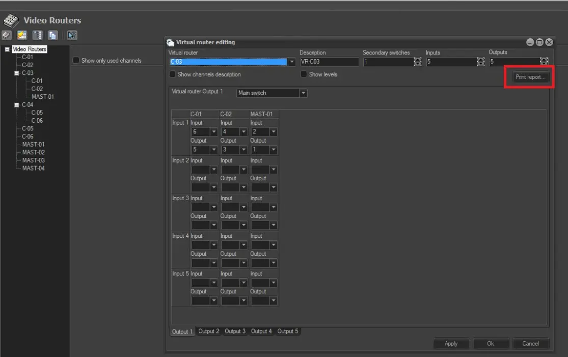 Once the resource(s) related to the virtual router (and its managed sub-routers) has been created, it can be configured under Etere's Configuration > Settings > Devices > Video Routers section as described in the following procedure: