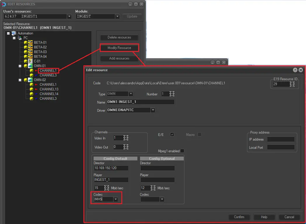 NB: The procedure detailed in this chapter can be applied to almost all standard codecs (e.g. IMX50, XDCAM, DVCPRO, etc.). For information on how to change to other codecs, please contact Etere's customer support service.