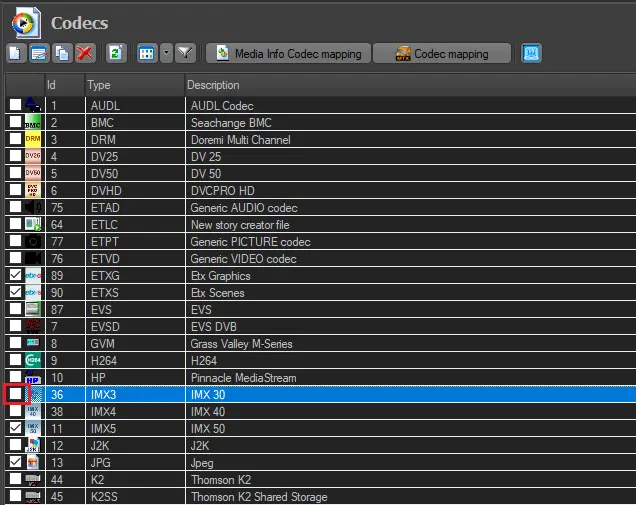 Replacing a codec is a sensitive task since codecs are widely configured across various Etere modules. In these terms, if the station plans to change its media management from one codec (e.g. IMX30) to another (e.g. IMX50), it will be required to follow the procedure detailed below: