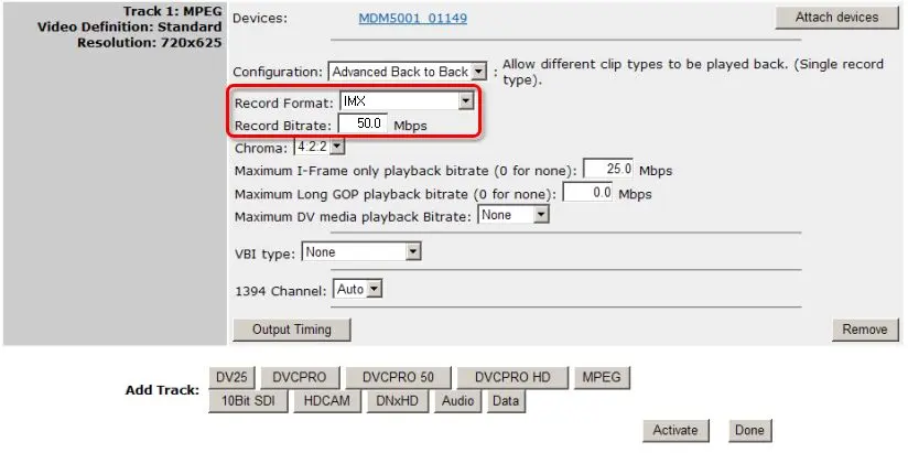Make sure that the device (e.g. Omneon MediaDeck) used for capturing media has been configured to ingest contents using the new codec (e.g. IMX50), for example: