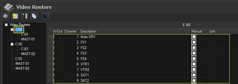 Once the resource(s) related to the virtual router (and its managed sub-routers) has been created, it can be configured under Etere's Configuration > Settings > Devices > Video Routers section as described in the following procedure: