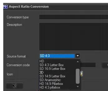 Icon - Optionally, select an Etere icon to represent the conversion profile. The user can choose an icon among the already available ones or load a custom icon. See chapter Etere Configuration > Settings > Update Workstation > Icons for more information about how to load new icons.