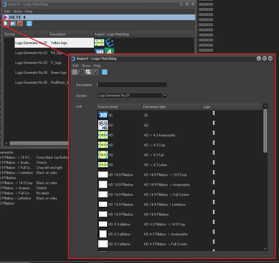 The [Logo matching] button allows mapping different logos of one or more Logo Generators to the playout aspect ratio.