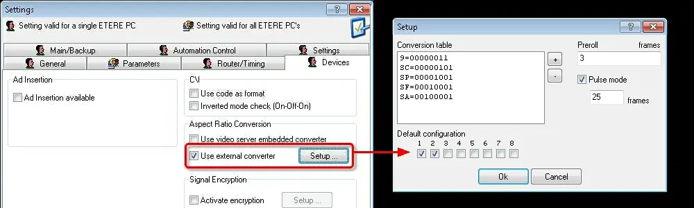 This feature can be enabled and configured under the Etere Automation > Settings > Devices section as described below: