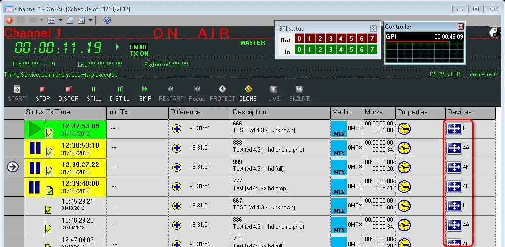During the playout, Etere Automation will automatically activate the GPI signal combinations that trigger the conversions required by scheduled assets (either internally or externally). Moreover, it's worth mentioning that the aspect ratio can be changed through the Remote Control Panel.