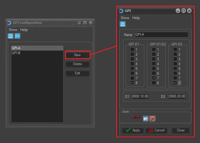 1. Click on the [New] button to create a new predefined GPI configuration: