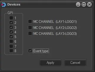 •GPI signals: Dictate the GPI signals, which should be activated at the selected transition.