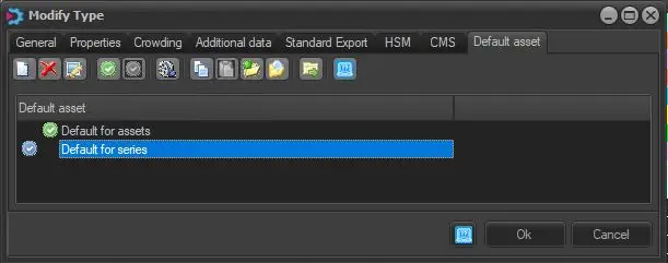 Main asset: Use it to set the asset form to be used by default when creating new assets,