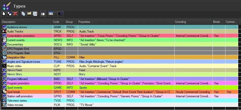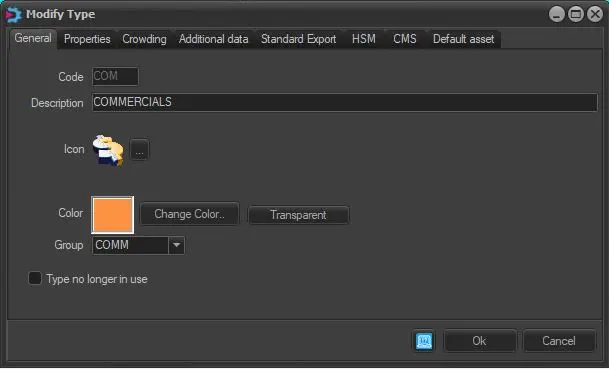 •Delete: This option will delete the highlighted type, use this function carefully. Please note that types cannot be deleted in cases they are in use either by an asset form or an EDL segment; in both cases, it will be possible to overpass this issue by performing one of the following actions: