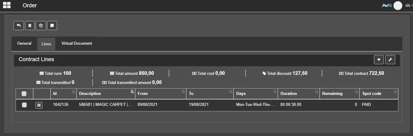 The Web Contract Lines allow to customize the information to be displayed in the lines of the AirSales contract in EtereWeb, including the Budget preview.
