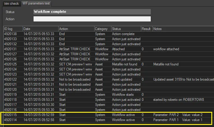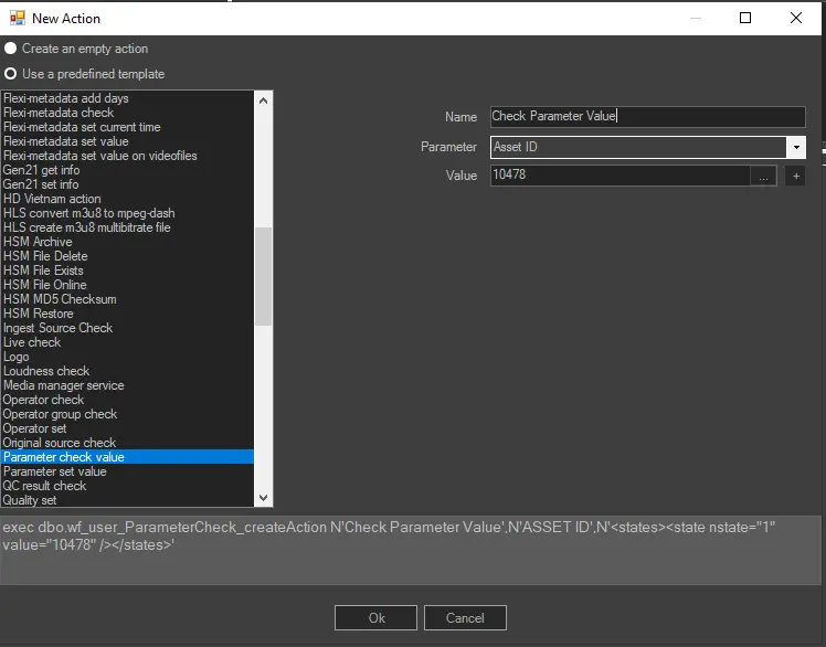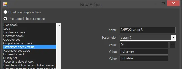 It is possible to check the parameter value using the related action "Parameter Check Value".