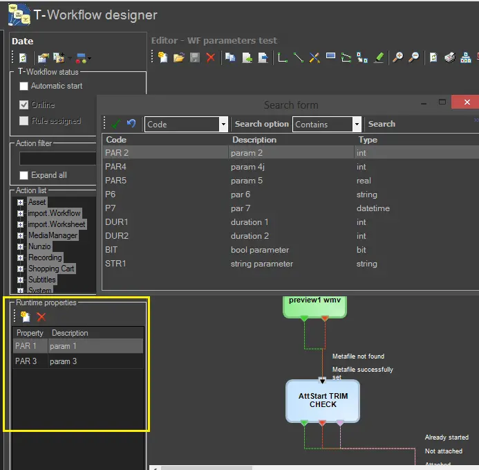 It is possible to set specific parameters with a fixed value and to read the instance of the T-workflow at runtime.