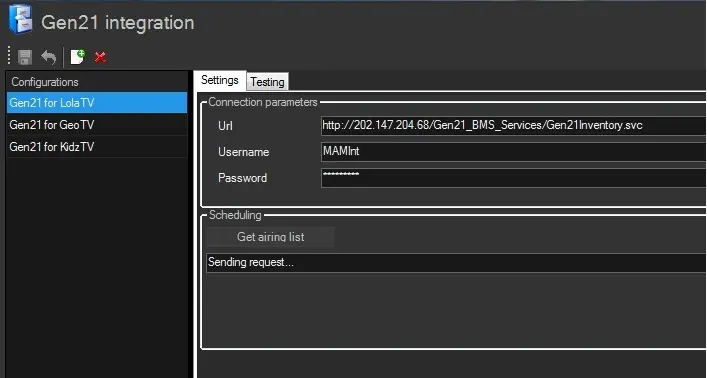 Etere allows the configuration of an unlimited number of Gen21 web services, thus making it possible to consult (and update) asset data across multiple Gen21 systems from one T-Workflow.