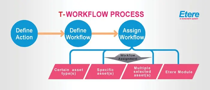 Due to Etere's distributed architecture, all T-workflows can be used by the other Etere Modules automatically, and users can set Default T-Workflows for specific operations (e.g. after the asset is modified).
