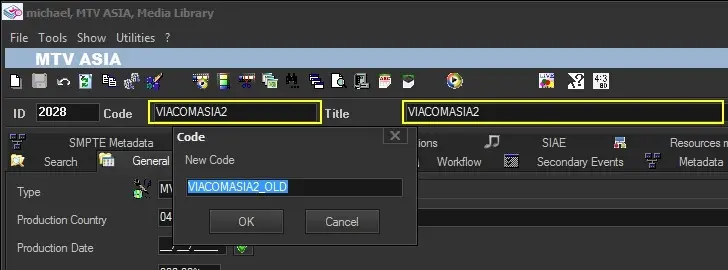 1. Open the Media Library module and rename the code and title (e.g. 3627) of the asset with a new value (e.g. 3627_old) by double-clicking on the related field: