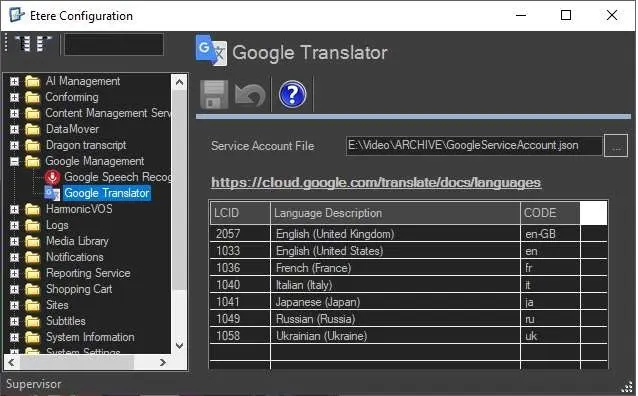 In order to start using the translation feature, a service account file (.json) is mandatory. It must be selected from the Service Account File field in this section.
