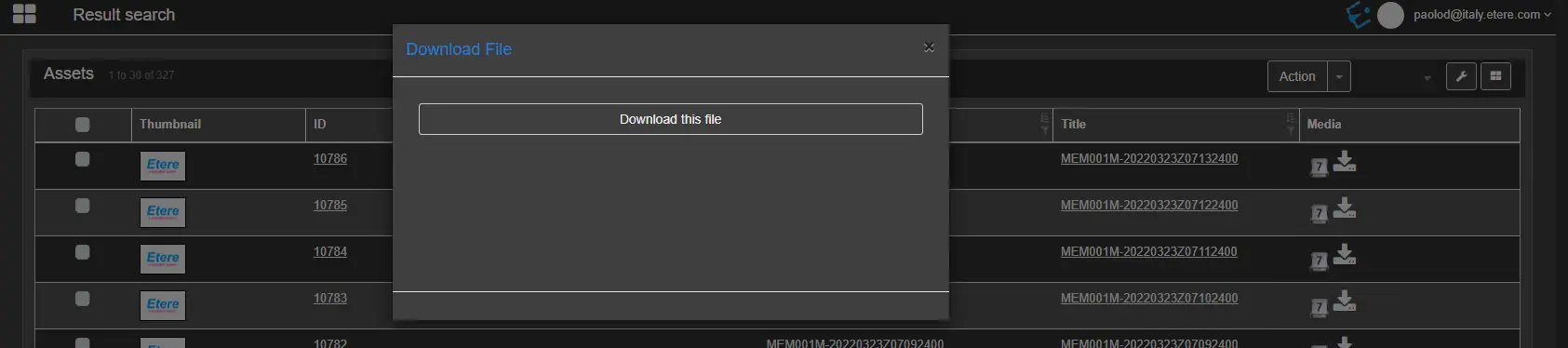 7. In case the request is accepted, the web user will be now allowed to download the requested file(s) through EtereWeb: