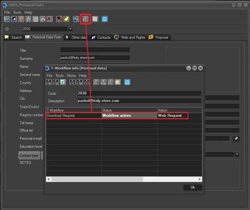 It is important to mention that "web requests" T-workflows are not attached to the asset form but directly to the requesting user's data: