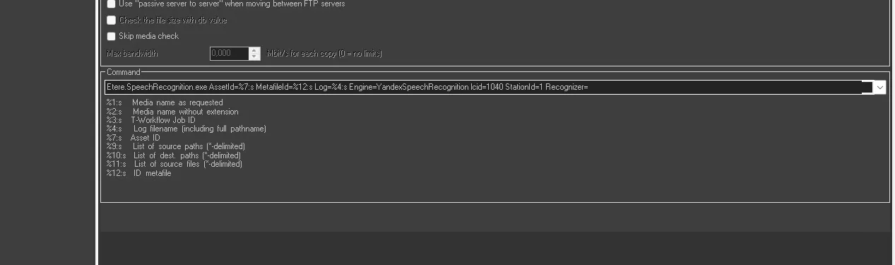 The execution will be done through the media manager service which will launch an executable with the parameters in the "Command" field. This field will be created and setted automatically when the action is created.
