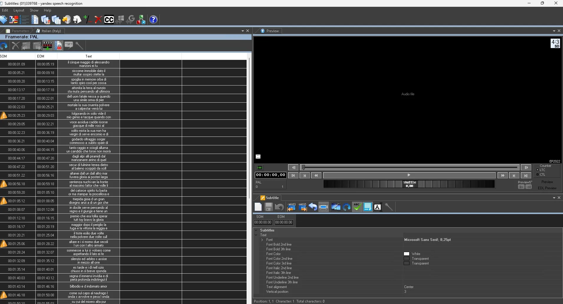 This action allows you to read the source file to export the text and create subtitles with the set language.