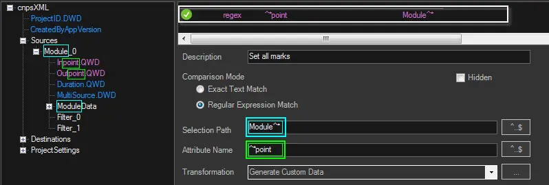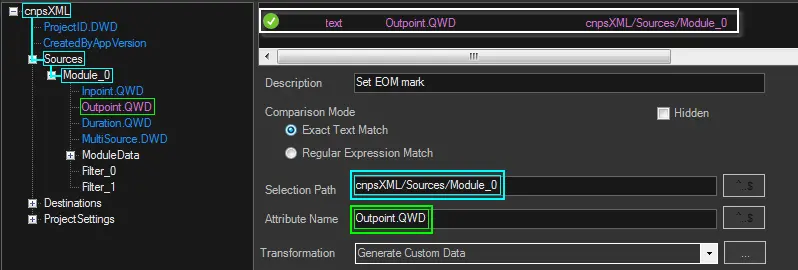 In the attributes tree, all the attributes matching a transformation rule will be highlighted: