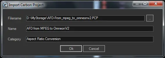 Filename - Browse and select the original Carbon project generated using a local Carbon application.