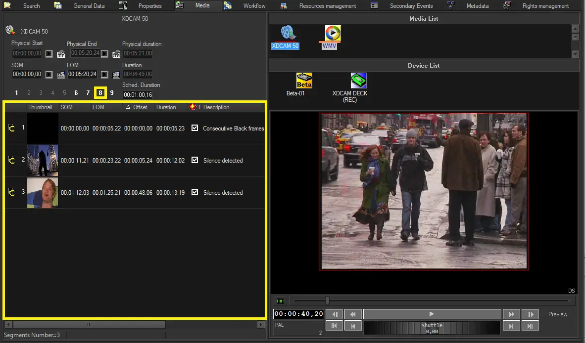 •As an EDL: Obtained results are automatically marked in the selected asset's EDL: