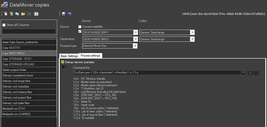 To copy media files between two SeaChange Video Servers, you must use the executable provided by Etere. You need to set the External Mover Exe action as detailed in this chapter to create this action.