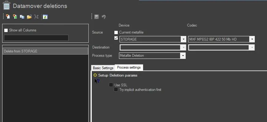 Note: The "Use SSL" option is disabled by default for all file deletion actions and must be enabled on a case-by-case basis.