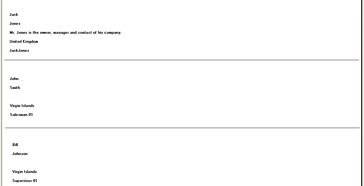 This report allows outputting specific fields from the personal data database arranging information as badges.