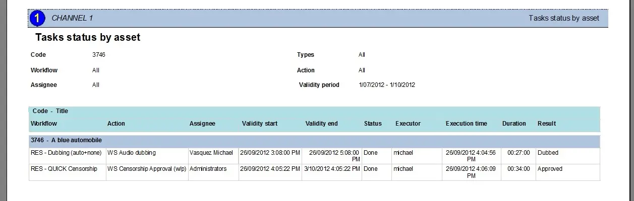 Types - Narrow the report to all the worksheets performed for certain assets (e.g., TV season).