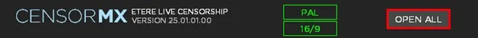 5. Click on [OPEN ALL] to start the application. You should see the video on three display screens: LIVE IN, EDITOR and ON AIR.