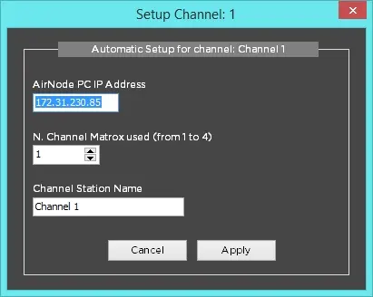 Port - Insert the Port of relative AirNode MTX2 for the respective channels as below.