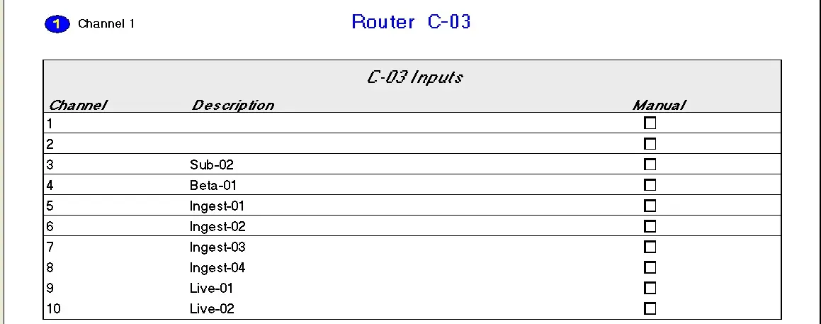 This option allows you to print all the information regarding Video Routers currently used by the Etere system; just select the router and preview / print the report.