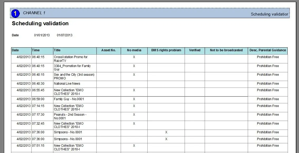 The "Scheduling Validation" report allows the generation of a document containing all the issues detected for events scheduled within a given period.