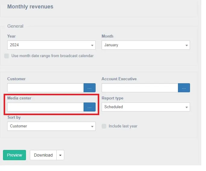 Media center - Narrow the search only to orders related to a certain media center.