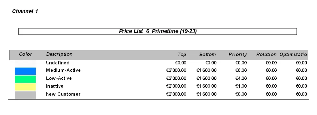 •Color: Select (double-click) the colour to which the report is concerned, that is, the pricing classification (e.g., top, regular, infrequent, etc.),