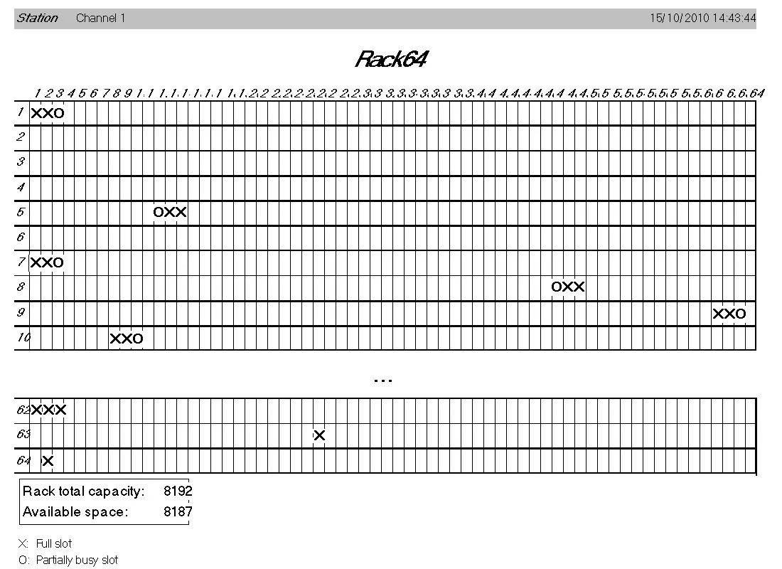 The Racks report allows printing the most relevant information regarding the selected Rack (i.e., total capacity and available space).