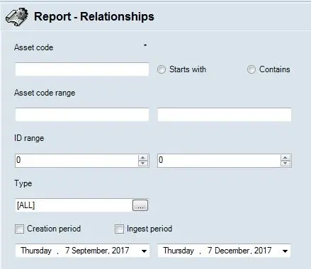 ID range: Enter the range between two assets ID to include asset types within the two ranges in the report.
