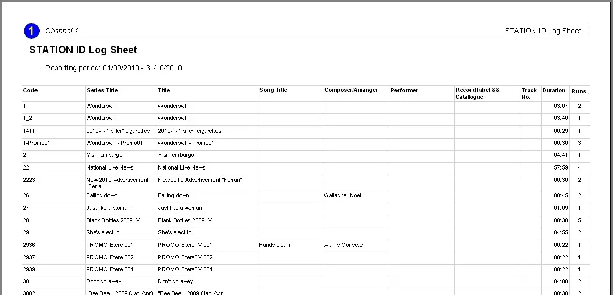 The 'Station Log Sheet' report permits stations to generate a report containing all the events programmed on the on-air schedules of a specific date range.