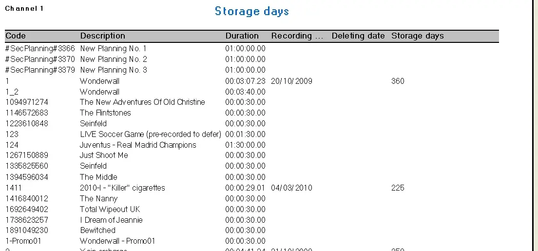 The Storage Days report allows printing a document containing all the selected assets with their respective scheduled 'deleting day' and 'storage day'.