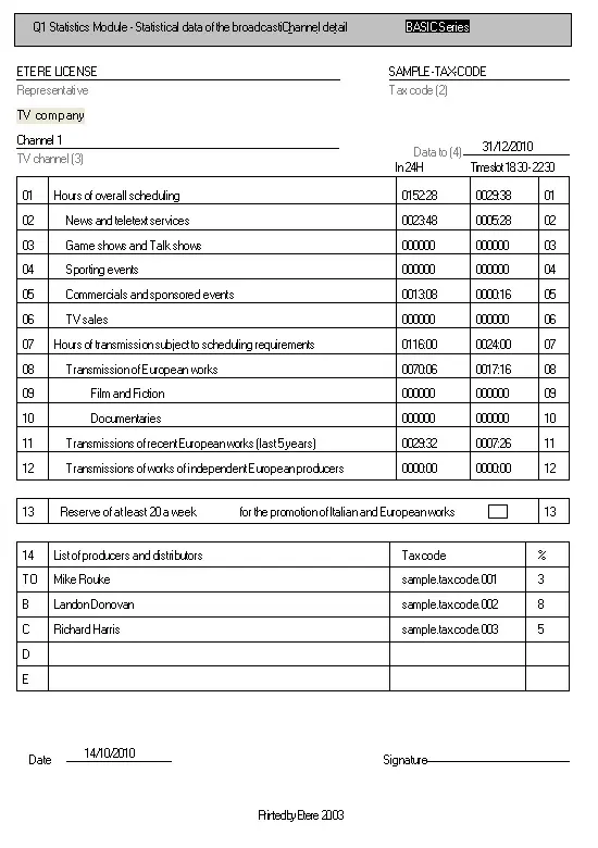 The Q1 Statistics Module allows you to generate a document containing all your company's statistical data by compiling a few intuitive fields.