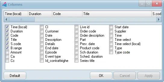 The Summary Final Transmission Schedule report allows the generation of a document containing the events transmitted within a certain period, indicating their scheduled time, duration, linked asset code, exploded part, parental classification, category, close captions, spot code, booking range, event type, and live channel.