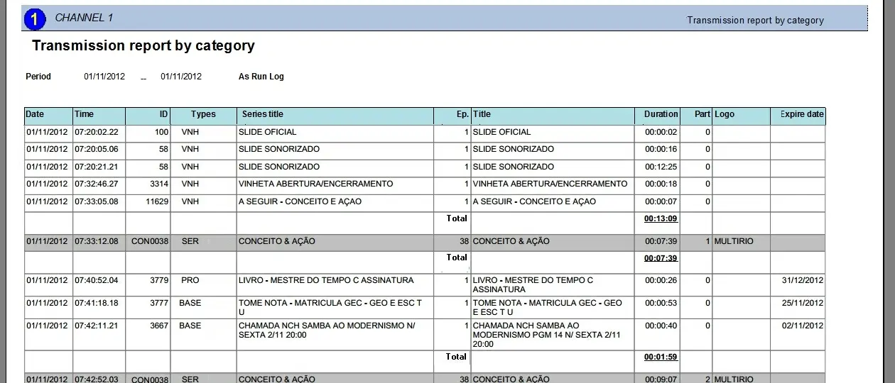 It's worth mentioning that a label will indicate -depending on whether the start date is in the past or future- if the report is related to either an "As-run log" or a "Transmission report" respectively.